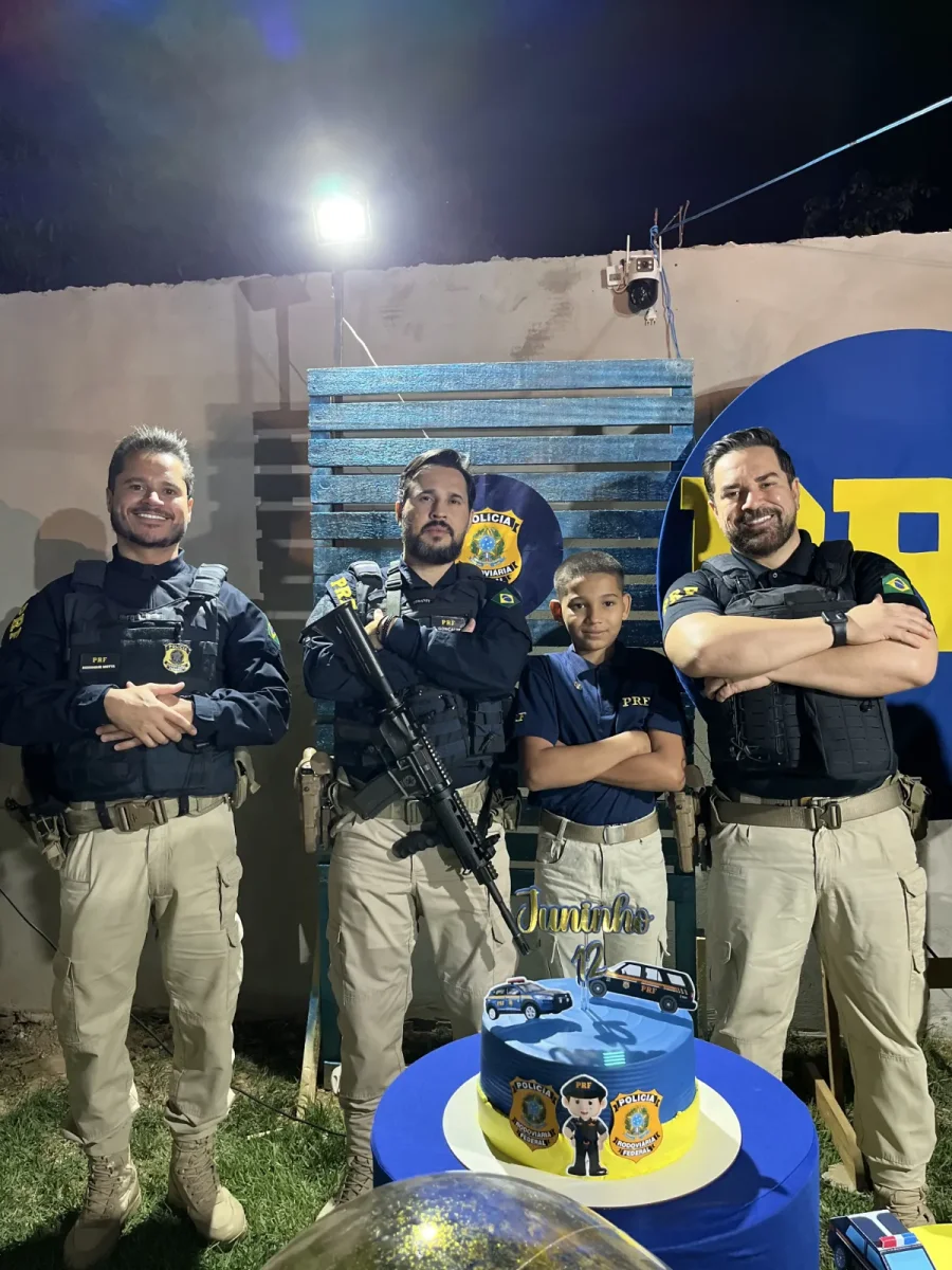 A mãe, Neidiane Pires, contou que a ideia nasceu como uma “festinha de gratidão ao Senhor” após um período de luto profundo. Ao escolher o tema, Juninho não hesitou: PRF. “É o sonho dele. Ele sempre fala: ‘Quando eu crescer, quero ser PRF, vou trabalhar na rodovia’”, relatou.