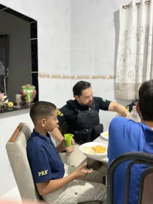O clima de alegria contagiou adultos e crianças. Os policiais cantaram “Parabéns”, jantaram com a família, tiraram fotos com os convidados e presentearam o aniversariante com itens simbólicos da corporação, como uma garrafinha e um broche, que ele guardou com carinho.