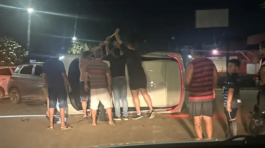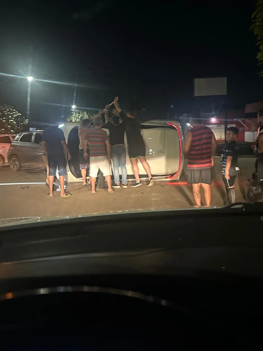 As imagens registradas por populares mostram momentos de tensão após o acidente, com várias pessoas se mobilizando para tentar desvirar o veículo capotado, enquanto moradores demonstravam susto e preocupação. Em um dos vídeos, uma mulher relata, visivelmente abalada: “Que susto! O carro acabou de capotar aqui”.