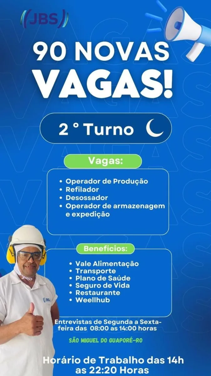 Uma das maiores empresas de alimentos do mundo e referência no setor de proteínas, a JBS está com 90 vagas de emprego abertas na unidade localizada em São Miguel do Guaporé. As oportunidades surgem em meio à expansão das operações da empresa, principalmente na área de desossa, reforçando a necessidade de novos profissionais para a linha de produção.